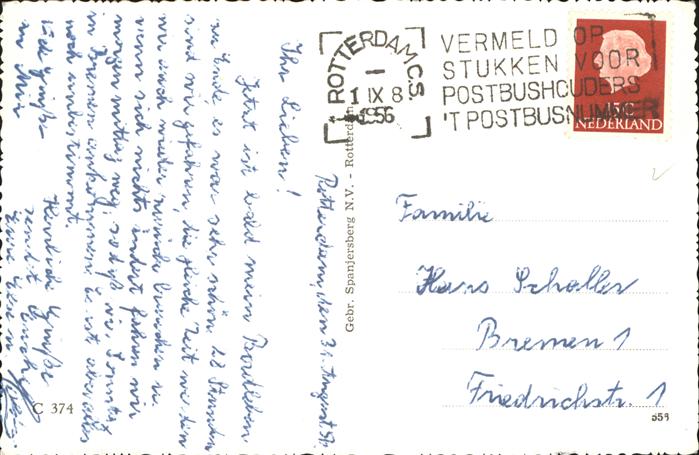 old postcard Rotterdam Jachthaven Koninginnekerk postalisch gelaufen