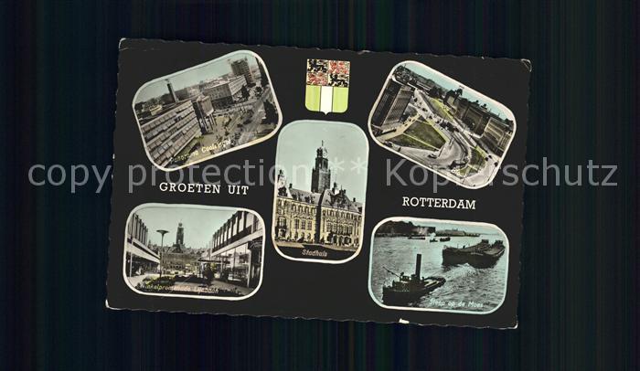 old postcard Rotterdam Maas Stadhuis Lijnbaan postalisch gelaufen Erhaltung siehe scans