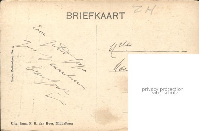 old postcard Rotterdam Markt Erasmus Standbeeld postalisch gelaufen