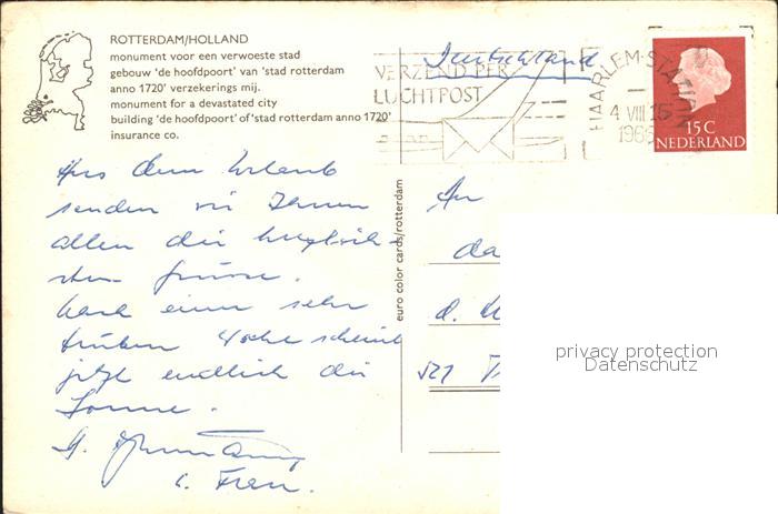 old postcard Rotterdam Monument Gebouw de hoofdpoort postalisch gelaufen Erhaltung siehe scans