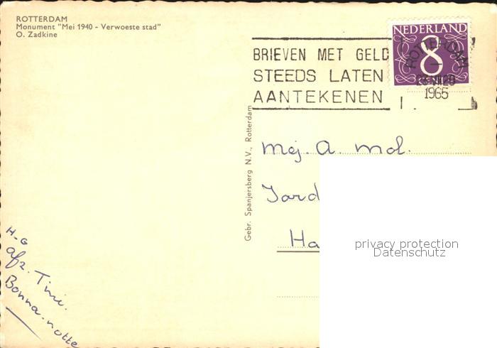 old postcard Rotterdam Monument Mei 1940 Verwoeste stad postalisch gelaufen Erhaltung siehe scans