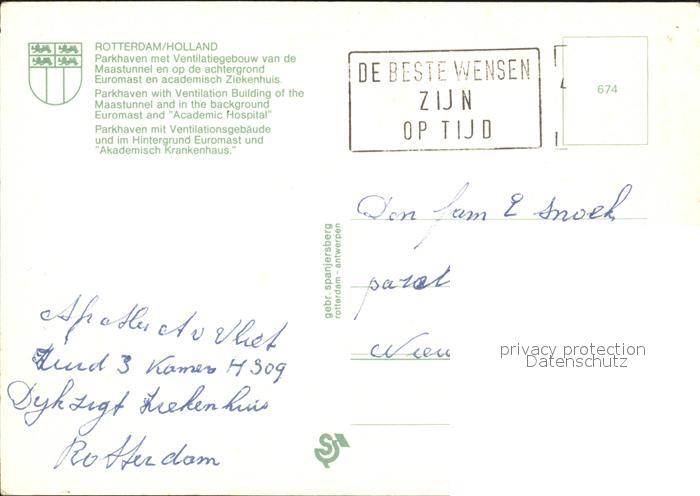 old postcard Rotterdam Parkhaven Maastunnel Ziekenhuis postalisch gelaufen Erhaltung siehe scans