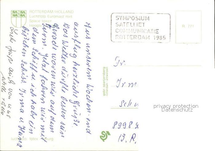 Rotterdam Space tower Fliegeraufnahme postalisch nicht gelaufen Erhaltung siehe scans