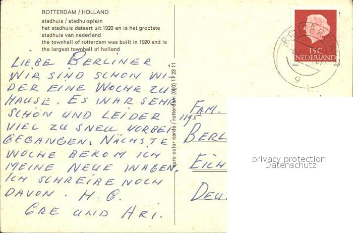 old postcard Rotterdam Stadhuis Stadhuisplein Rathaus postalisch gelaufen Erhaltung siehe scans