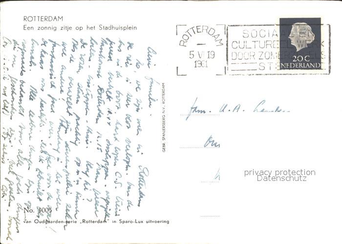 old postcard Rotterdam Stadhuisplein postalisch gelaufen Erhaltung siehe scans