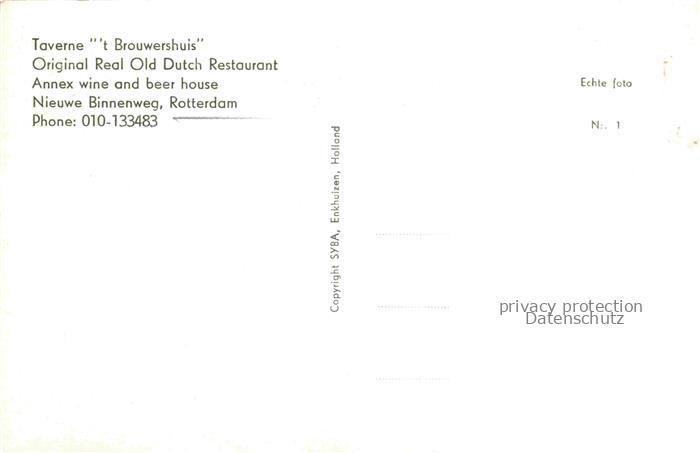 74156854 ROTTERDAM Zuid-Holland NL Restaurant Innenraum Faesser Backsteingewoelbe Tische Kerzenleuchter Nieuwe-Binnenweg t-Brouwershuis postalisch nicht gelaufen Erhaltung siehe scans [Karloger] KatCode: 11371500