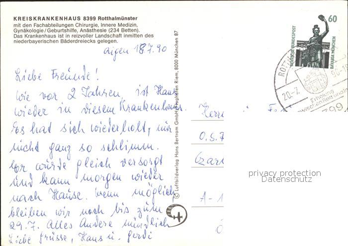 72034000 alte Postkarte Rotthalmuenster Kreiskrankenhaus Fliegeraufnahme postalisch gelaufen Erhaltung siehe scans KatCode: 11110009275143