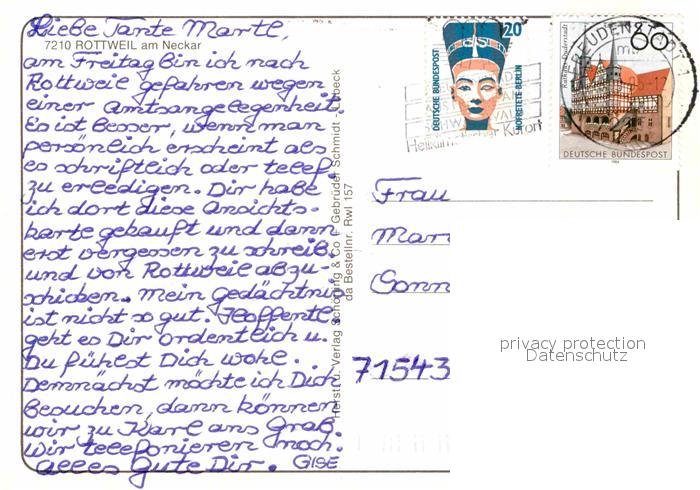 72769011 alte Postkarte Rottweil Neckar Altstadt Turm Kirche Geschichte postalisch gelaufen Erhaltung siehe scans [FriedD77] KatCode: 11110008325049