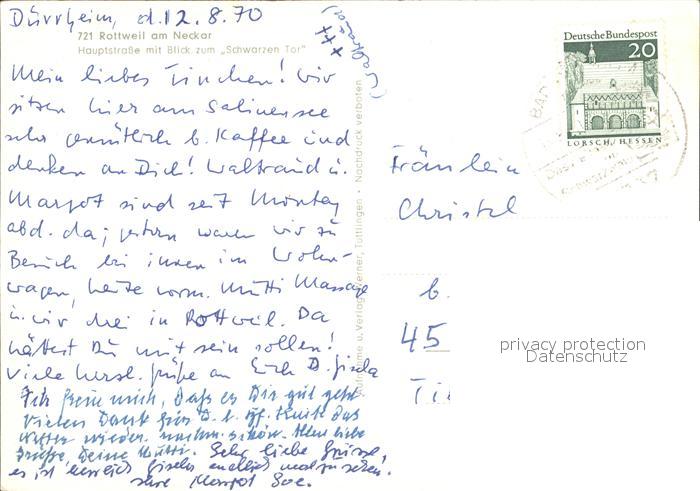 72069377 alte Postkarte Rottweil Neckar Hauptstrasse mit Schwarzem Tor postalisch gelaufen Erhaltung siehe scans KatCode: 11110008325049