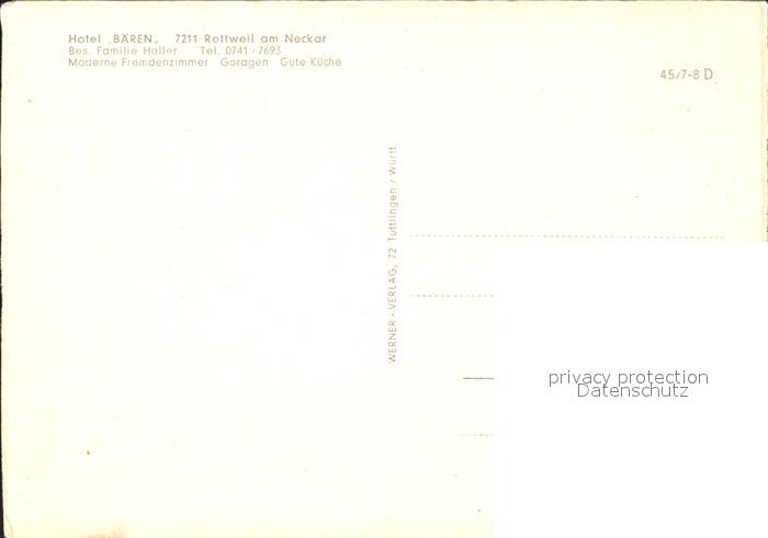 71928973 Rottweil Neckar Hotel Baeren postalisch nicht gelaufen Erhaltung siehe scans KatCode: 11110008325049