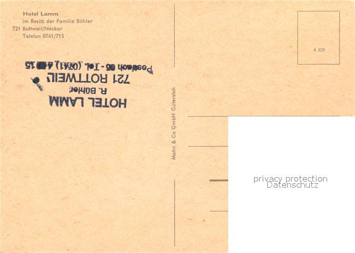 73226342 Rottweil Neckar Hotel Lamm Brunnen postalisch nicht gelaufen Erhaltung siehe scans [FriedD77] KatCode: 11110008325049