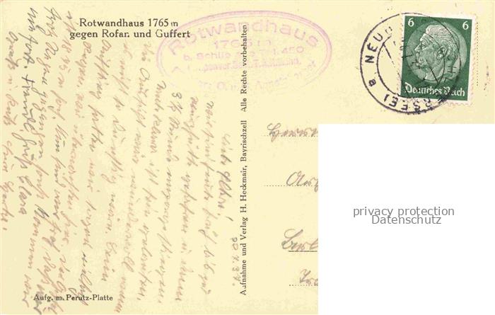 74026500 alte Postkarte Rotwandhaus 1765m Schliersee Bayern Berghaus Panorama Blick gegen Rofar und Guffert postalisch gelaufen Erhaltung siehe scans [FriedD77] KatCode: 11110009182131