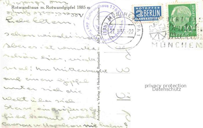 74128642 alte Postkarte Rotwandhaus 1765m Schliersee Bayern mit Rotwandgipfel postalisch gelaufen Erhaltung siehe scans [WerneD78] KatCode: 11110009182131