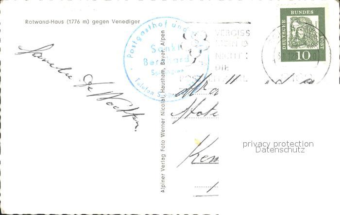 72089401 alte Postkarte Rotwandhaus mit Venediger postalisch gelaufen Erhaltung siehe scans KatCode: 11110009182131