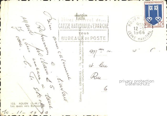 12307385 carte postale Rouen Brueckenpartie postalisch gelaufen Erhaltung siehe scans KatCode: 11170076376540
