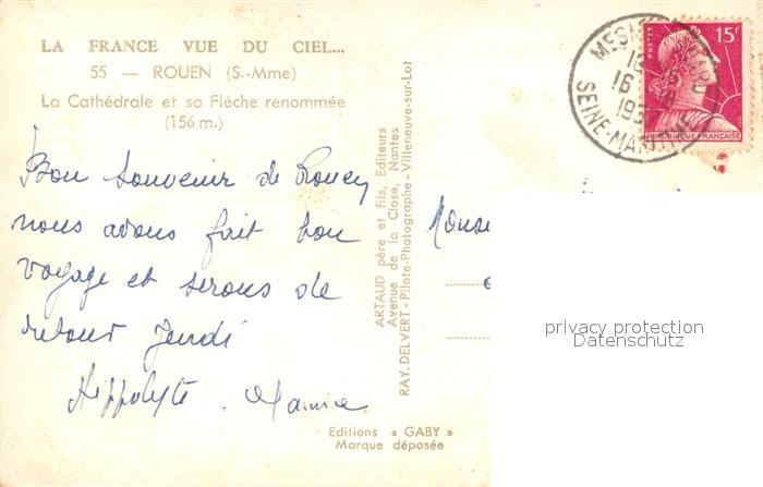 13594365 Rouen Cathedrale et sa Flèche renommée vue aérienne postalisch gelaufen Erhaltung siehe scans [FriedD77] carte postale Frie Katcode 11170076376540