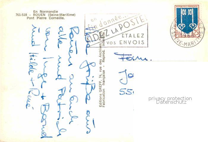 12904331 carte postale Rouen Fliegeraufnahme Pont Pierre Corneille postalisch gelaufen Erhaltung siehe scans [LiesaD40] KatCode: 11170076376540