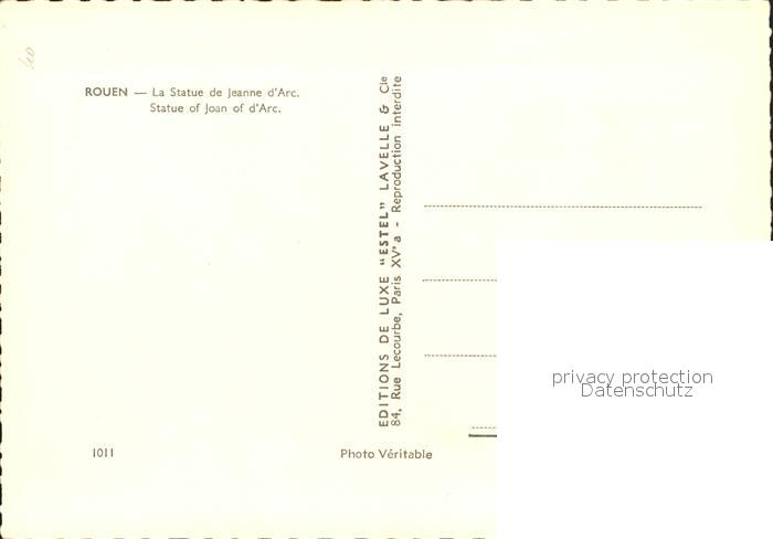 12180994 Rouen La Statue de Jeanne d Arc postalisch nicht gelaufen Erhaltung siehe scans KatCode: 11170076376540