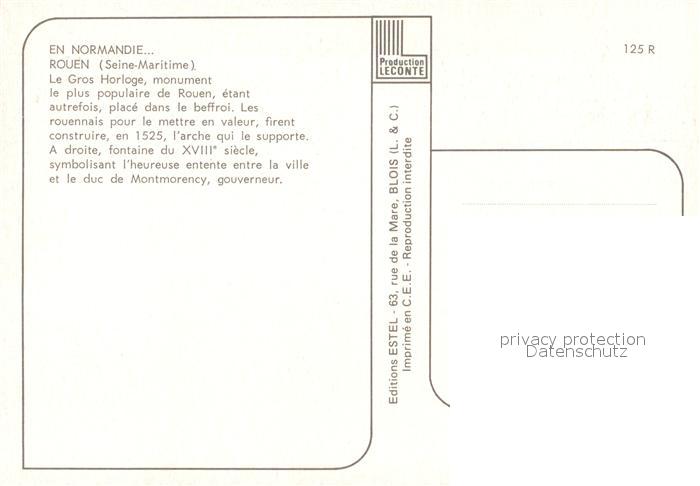 13536453 Rouen Le Gros Horloge Fontaine du XVIIIe siècle postalisch nicht gelaufen Erhaltung siehe scans [FriedD77] KatCode: 11170076376540