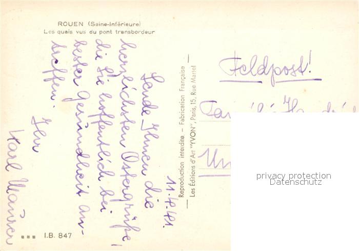 13514706 carte postale Rouen Les quais du pont transbordeur postalisch gelaufen Feldpostkarte Erhaltung siehe scans [KathaD81] KatCode: 11170076376540