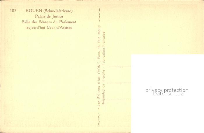 11674703 Rouen Palais de Justice Salles des Seances du Parlement postalisch nicht gelaufen Erhaltung siehe scans KatCode: 11170076376540