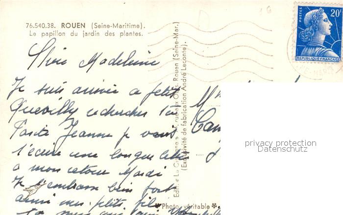 13535584 carte postale Rouen Papillon du jardin des plantes postalisch gelaufen Erhaltung siehe scans [FriedD77] KatCode: 11170076376540