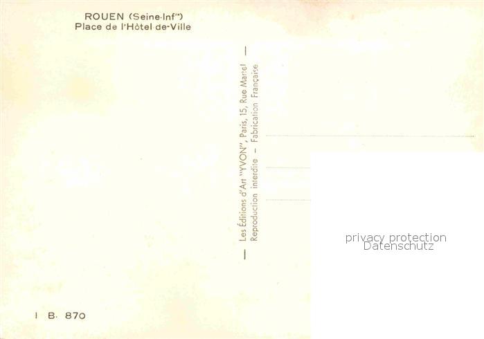 12815456 Rouen Place de l Hotel de Ville Monument postalisch nicht gelaufen Erhaltung siehe scans [FriedD77] KatCode: 11170076376540