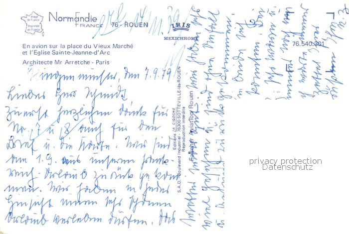 13056338 Rouen Place du Vieux Marche et Eglise Sainte Jeanne d’Arc Fliegeraufnahme postalisch nicht gelaufen Erhaltung siehe scans [WerneD78] KatCode: 11170076376540