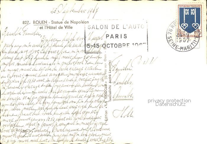 11903450 carte postale Rouen Statue de Napoleon Hotel de Ville postalisch gelaufen Erhaltung siehe scans KatCode: 11170076376540