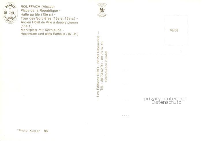 13826363 Rouffach Place de la République Halle au blé Tour des Sorcières Ancien Hôtel de Ville Marktplatz Kornlaube Hexenturm altes Rathaus postalisch nicht gelaufen Erhaltung siehe scans [FriedD77] Frie Katcode 11170068368287