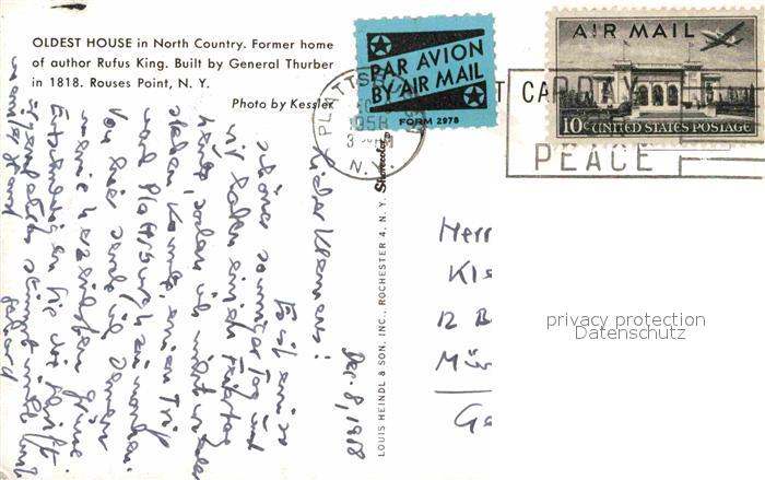 72763602 old postcard Rouses Point Oldest House in North County postalisch gelaufen Erhaltung siehe scans [LiesaD40] KatCode: 14140340000000