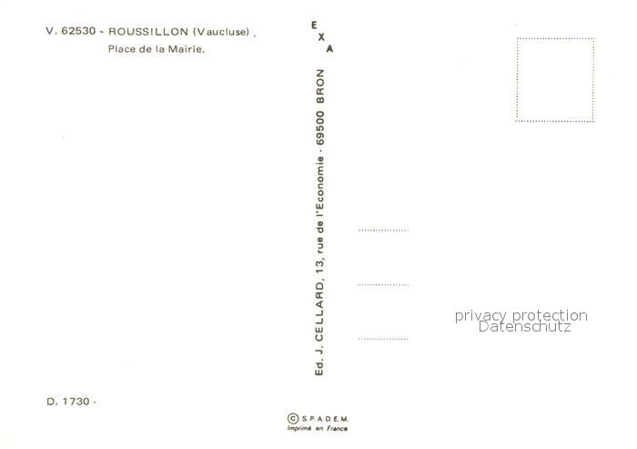 13025495 Roussillon Vaucluse Place de la Mairie postalisch nicht gelaufen Erhaltung siehe scans [PaolaD17] KatCode: 11170084184102
