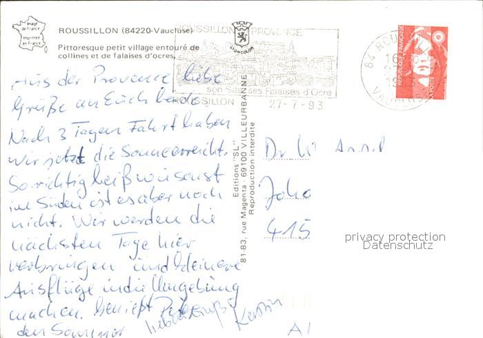 12065976 carte postale Roussillon Vaucluse Vue generale Falaises d ocres postalisch gelaufen Erhaltung siehe scans KatCode: 11170084184102