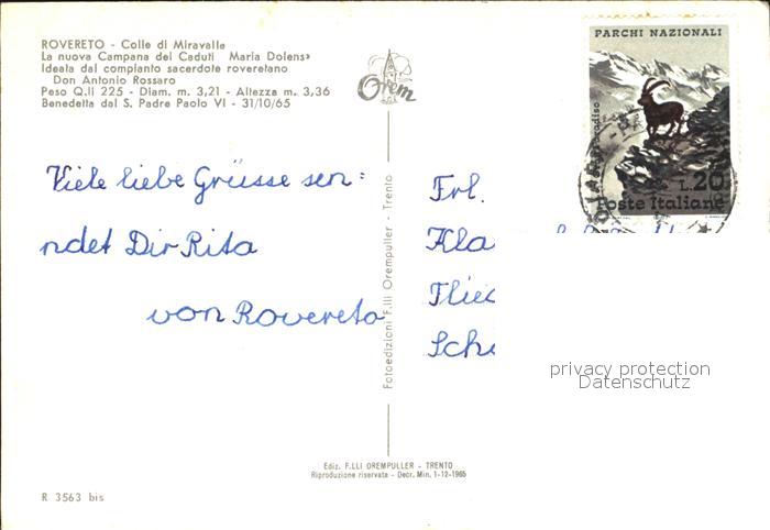 old postcard Rovereto Colle di Miravalle postalisch gelaufen Erhaltung siehe scans