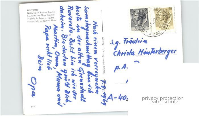 old postcard Rovereto Piazza Rosmini postalisch gelaufen Erhaltung siehe scans