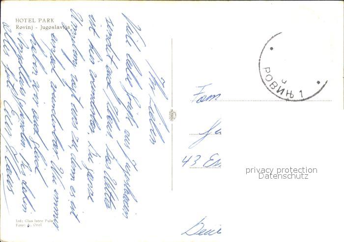 old postcard Rovinj Istrien Hotel Park Fischer Strand postalisch gelaufen Erhaltung siehe scans [FriedD77]