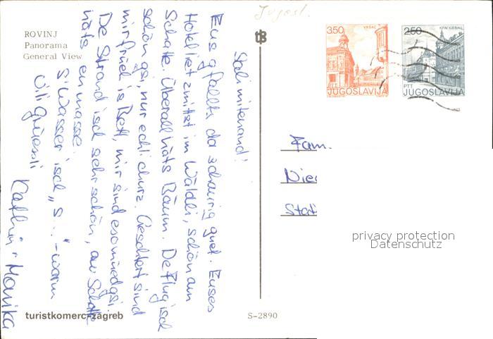 old postcard Rovinj Istrien Panorama Hafen Fliegeraufnahme postalisch gelaufen Erhaltung siehe scans