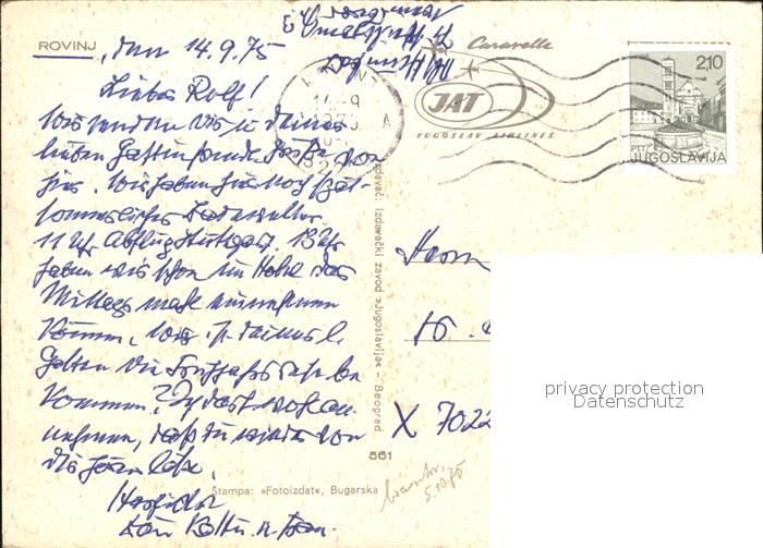 old postcard Rovinj Istrien Uferstrasse Hafen Altstadt postalisch gelaufen Erhaltung siehe scans
