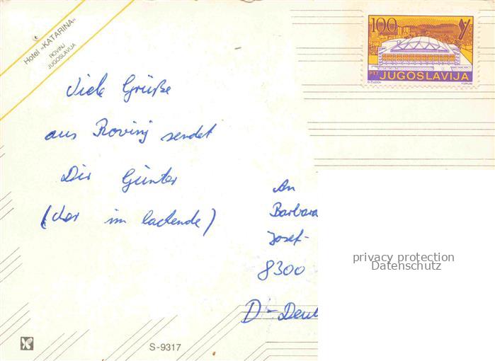 74035064 old postcard Rovinj Rovigno Istrien Croatia Hotel Katarina Halbinsel Altstadt postalisch gelaufen Fliegeraufnahme Erhaltung siehe scans [FriedD77] KatCode: 11260