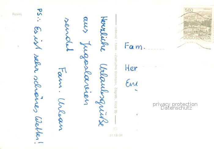 old postcard Rovinj Rovigno Istrien Halbinsel Altstadt Kirche Fliegeraufnahme postalisch gelaufen Erhaltung siehe scans [FriedD77]