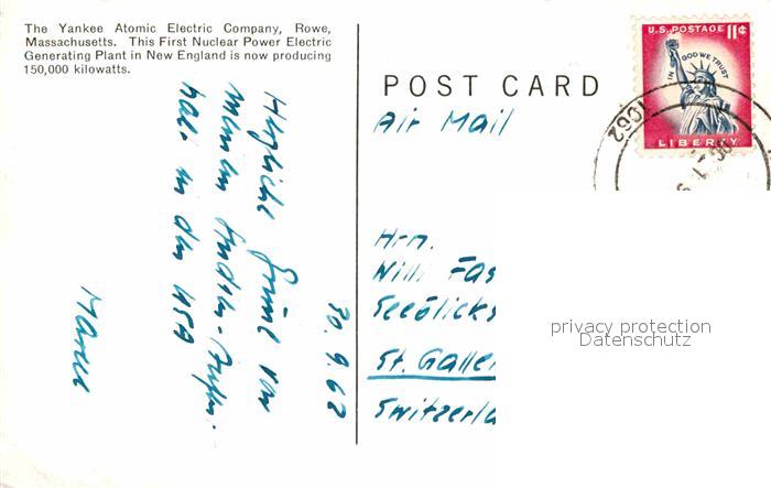 72739081 old postcard Rowe Massachusetts The Yankee Atomic Electric Company postalisch gelaufen Erhaltung siehe scans [WerneD78] KatCode: 14140230000000