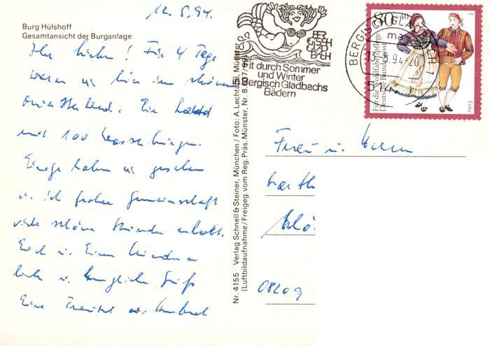 73946897 alte Postkarte Roxel Burg Huelshoff Burganlage Wasserschloss postalisch gelaufen Fliegeraufnahme Erhaltung siehe scans [FriedD77] KatCode: 11110005515000