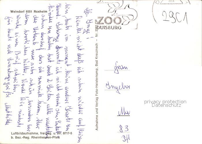71946242 alte Postkarte Roxheim Bobenheim Fliegeraufnahme Weindorf postalisch gelaufen Erhaltung siehe scans KatCode: 11110007338004