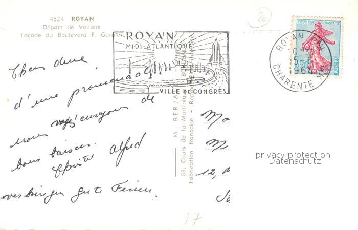 13494995 carte postale Royan 17 Départ de Voiliers du port Facade du Boulevard F. Garnier postalisch gelaufen Erhaltung siehe scans [FriedD77] KatCode: 11170017386194
