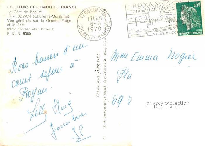 12851489 carte postale Royan 17 Fliegeraufnahme postalisch gelaufen Erhaltung siehe scans [KathaD81] KatCode: 11170017386194