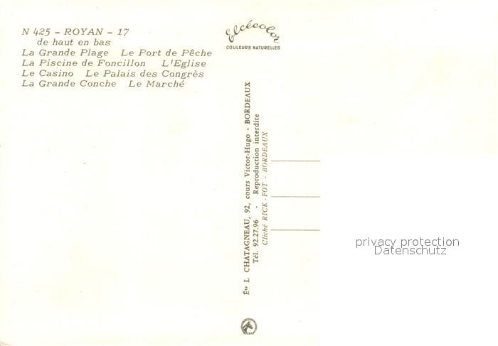 13639955 Royan 17 La Grande Plage Le Port de Peche La Piscine de Foncillon l’Eglise Le Casino Le Palais des Congres La Grande Conche Le Marche postalisch nicht gelaufen Erhaltung siehe scans [WerneD78] Wern Katcode 11170017386194