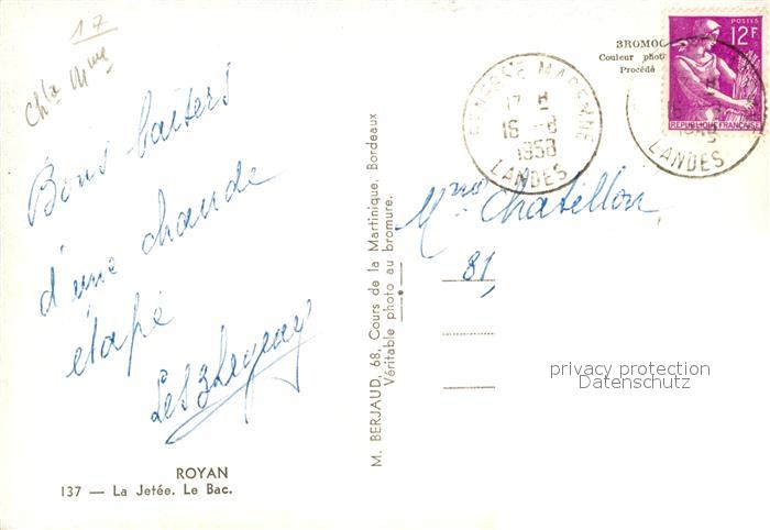 13593914 Royan 17 La Jetee le Bac postalisch gelaufen Erhaltung siehe scans [WerneD78] carte postale Wern Katcode 11170017386194