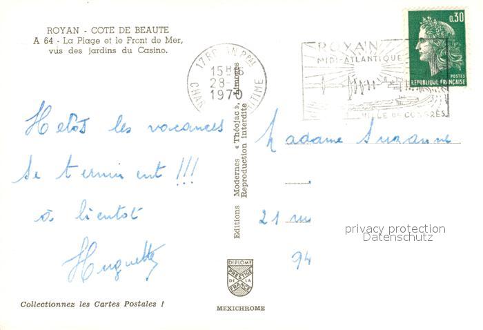 13590143 Royan 17 La Plage et le Front de Mer vues des Jardins du Casino postalisch gelaufen Erhaltung siehe scans [WerneD78] carte postale Wern Katcode 11170017386194