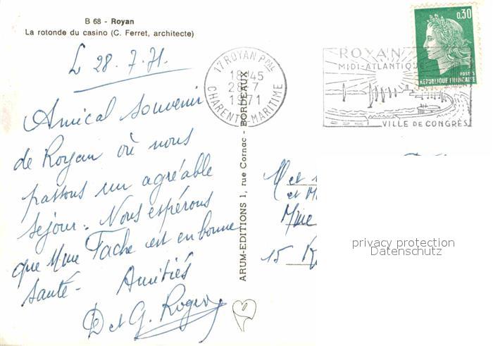 12662854 carte postale Royan 17 La rotonde du casino Architecte C. Ferret postalisch gelaufen Erhaltung siehe scans [FriedD77] KatCode: 11170017386194