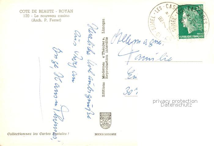 13019252 carte postale Royan 17 Le nouveau casino postalisch gelaufen Erhaltung siehe scans [WerneD78] KatCode: 11170017386194